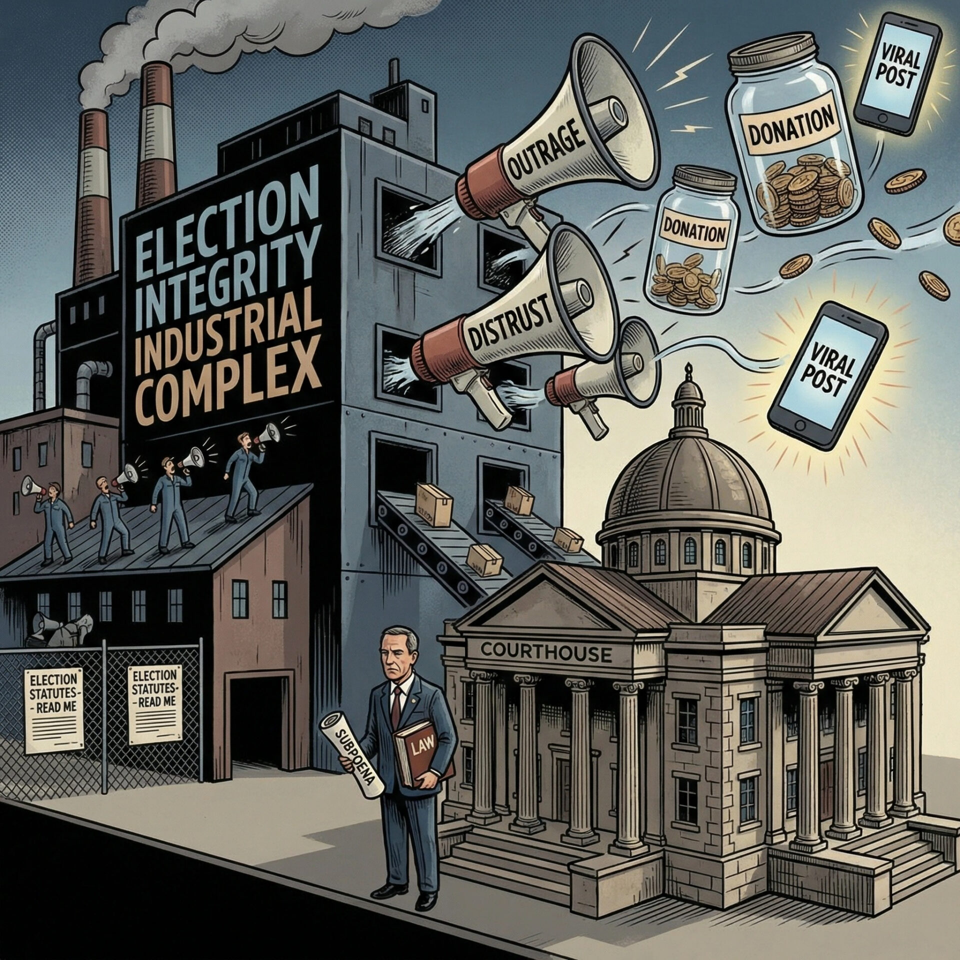 What we are watching unfold in Georgia is not a principled fight over election law, but the latest production of the Election Integrity Industrial Complex™ — the cottage industry of politicians, influencers, and professional outrage merchants who convert distrust in elections into attention, donations, and leverage. For this crowd, lawful process is never the answer; it is the obstacle. When Secretary of State Brad Raffensperger follows Georgia statutes that limit disclosure of sensitive voter data and insists that the federal government use a court order if it wants more, the response is not a legal rebuttal but performative indignation.