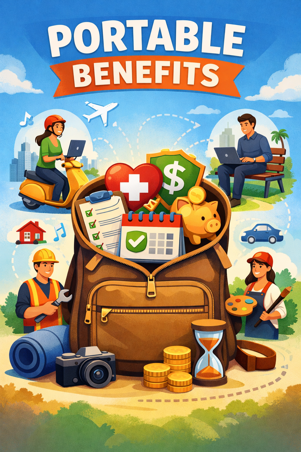 It would do so by creating a new voluntary portable benefits system. Self-employed workers could open portable benefits accounts offered by financial institutions or other approved entities, and the accounts could then be funded directly by workers or business clients that compensate workers for services they provide. Workers could spend money from the accounts as they see fit on current benefits they have, health expenses, or new benefits offerings from providers. Those include health insurance, unemployment insurance, disability insurance, life insurance, and retirement benefits.
