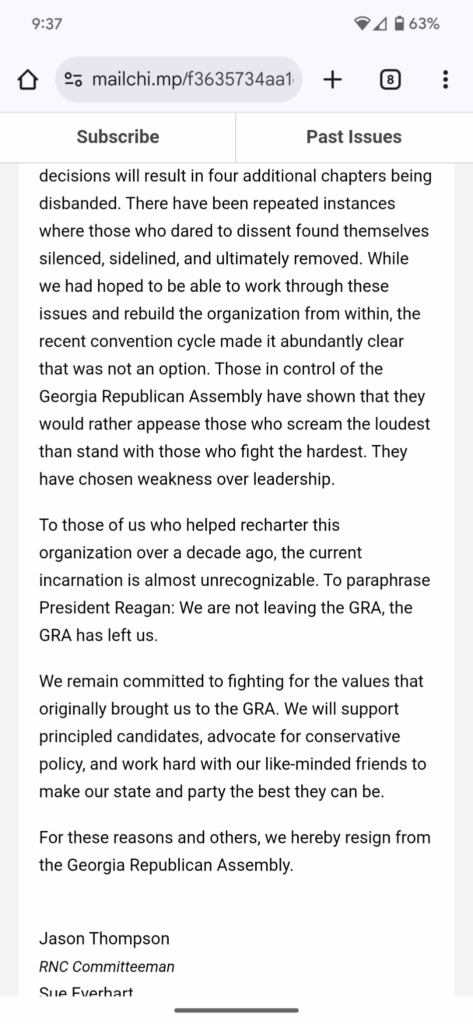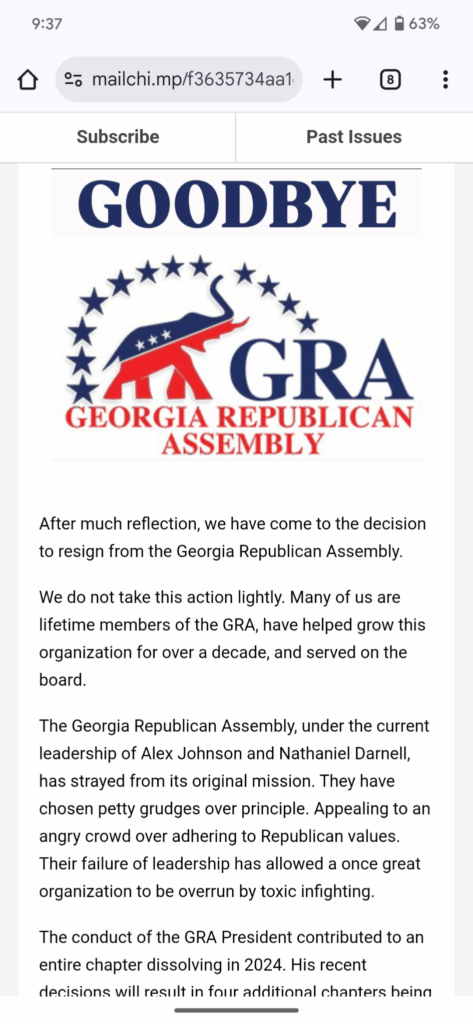 Fresh off the Georgia GOP State Convention, where, according to the Georgia Republican Assembly(GRA), almost all those elected to Party leadership were either endorsed by or dues-paying members, a mass exodus from the GRA has begun.